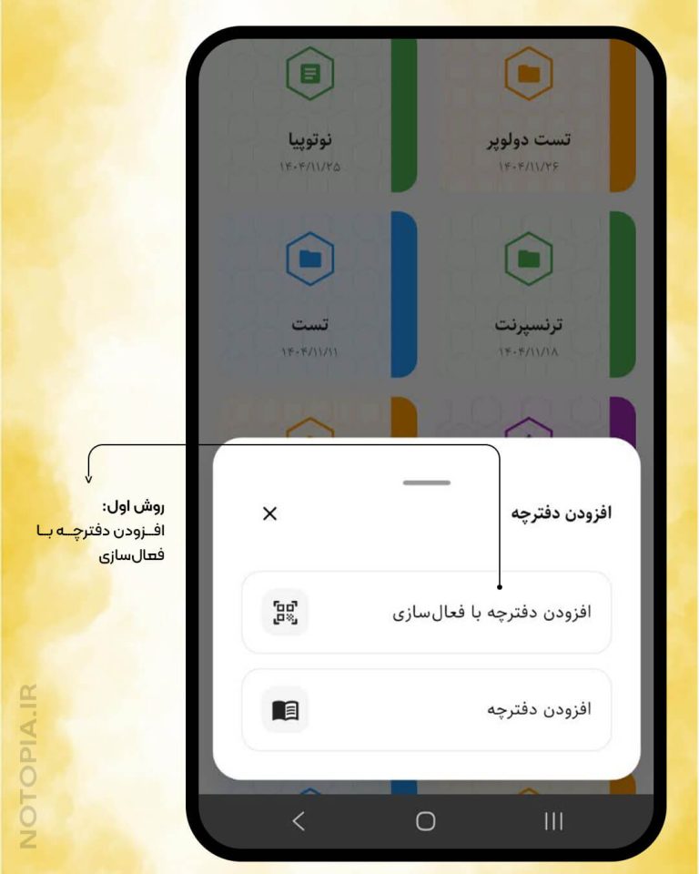 در این روش به کمک اسکن صفحه میتوانید دفتر نوتوپیا خود را فعال کنید.